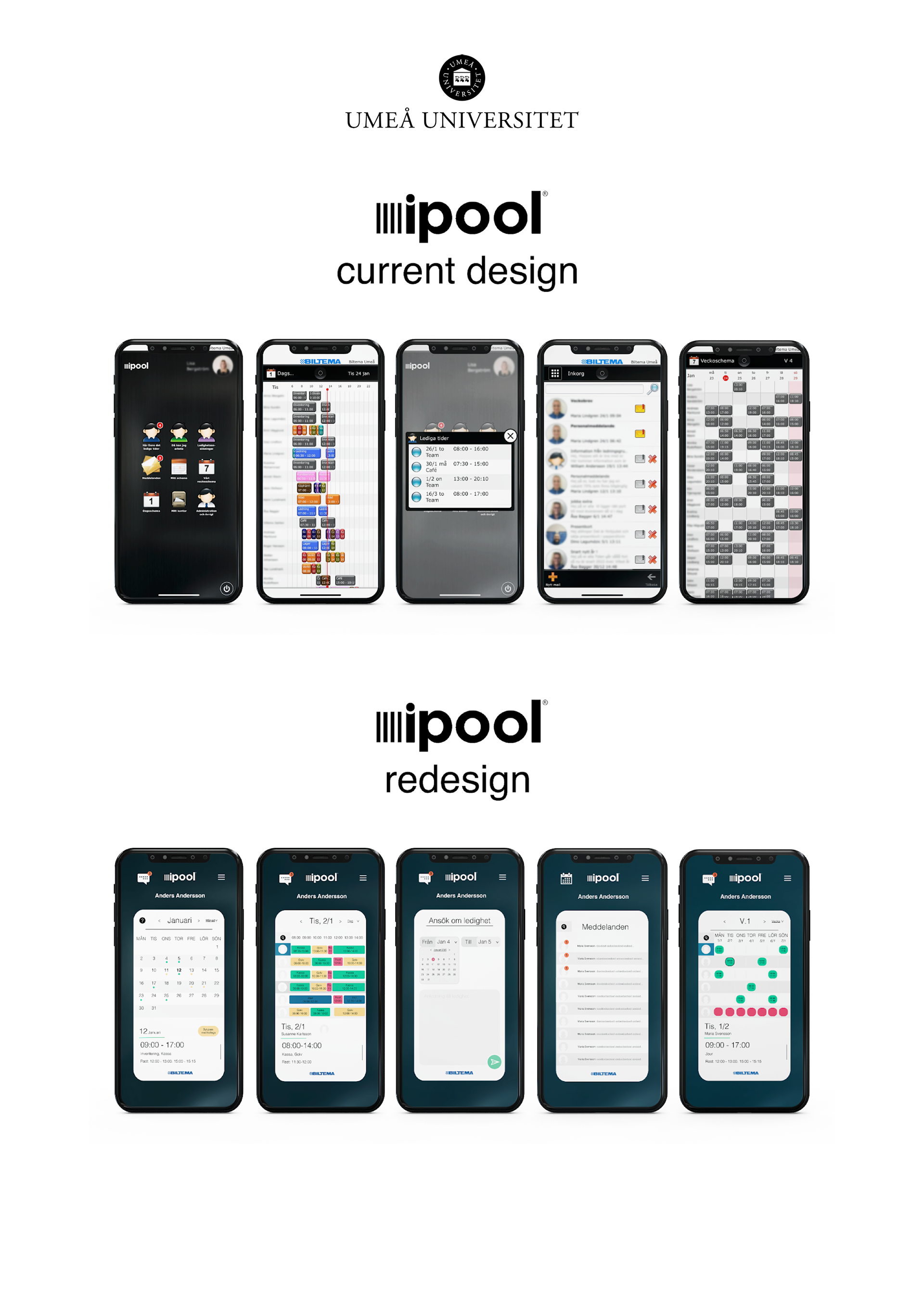 This was a school project in the course Design for User Experience, where we redesigned the Ipool app to improve usability for retail employees. Through a user survey, we found that the schedule was the most essential feature, so we brought it to the forefront and grouped related actions in one place. We modernized the structure and visual style to create a more intuitive and easy-to-use experience in everyday work.